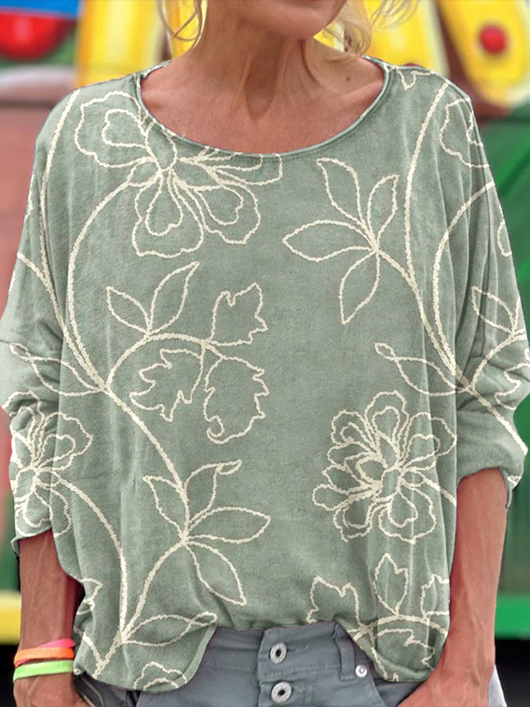 Vintage Floral Art Cozy Casual Sweater