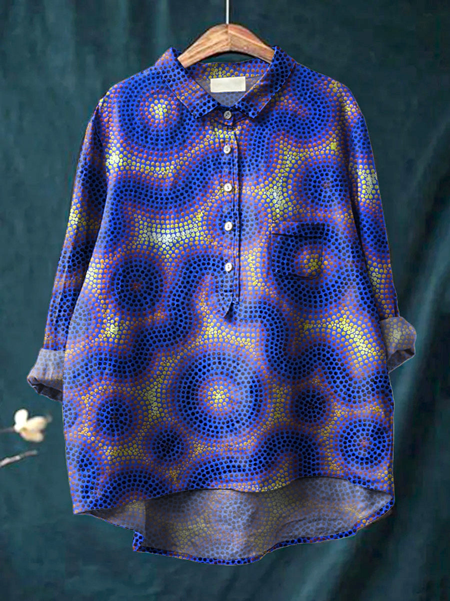 Abstract Swirl Pattern Printed Women's Casual Long Sleeve Comfortable Cotton Shirt