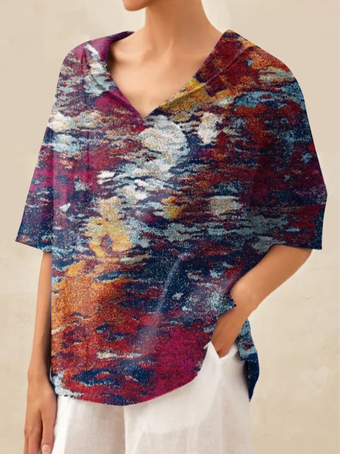 Women's Abstrct Art Casual Cotton And Linen Shirt