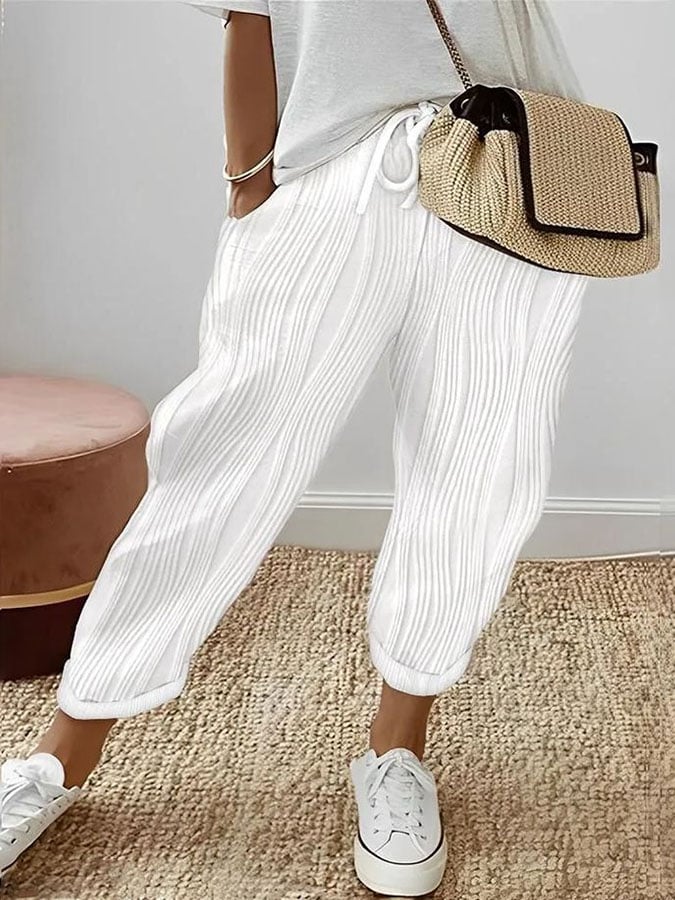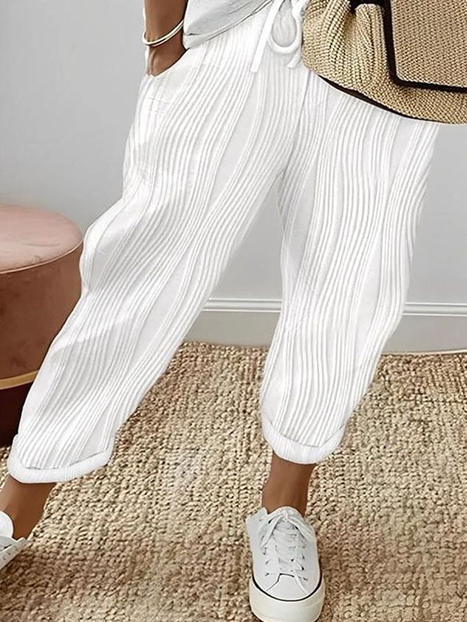 Striped Elegant Elastic Waist Slant Pocket Pants
