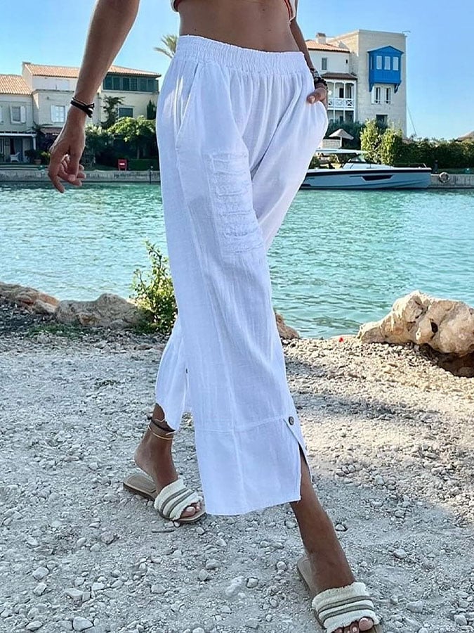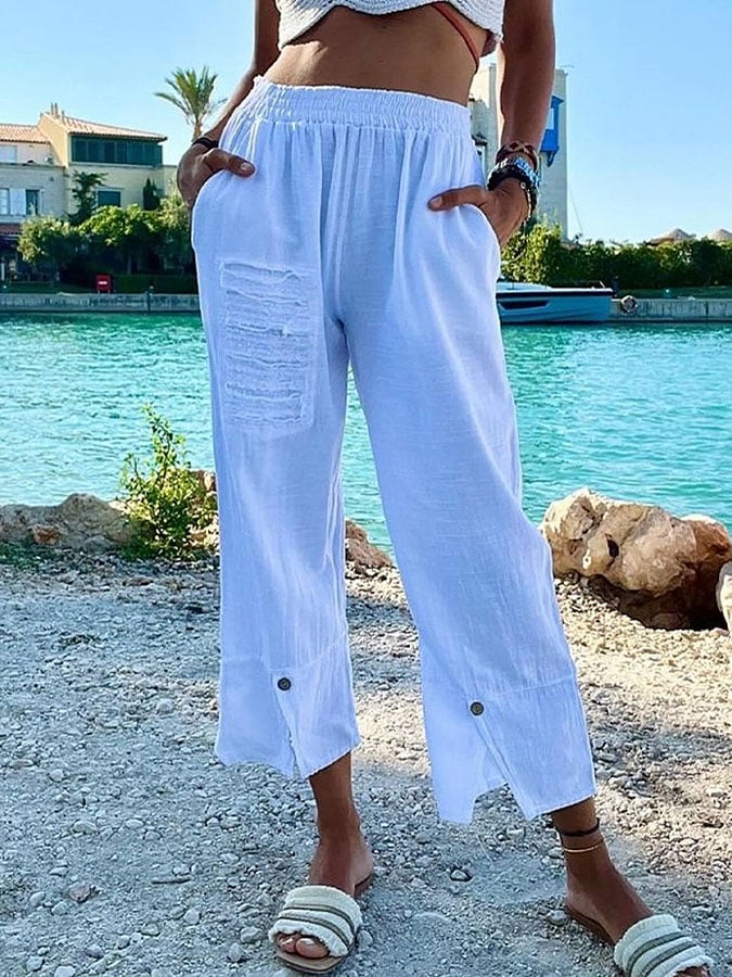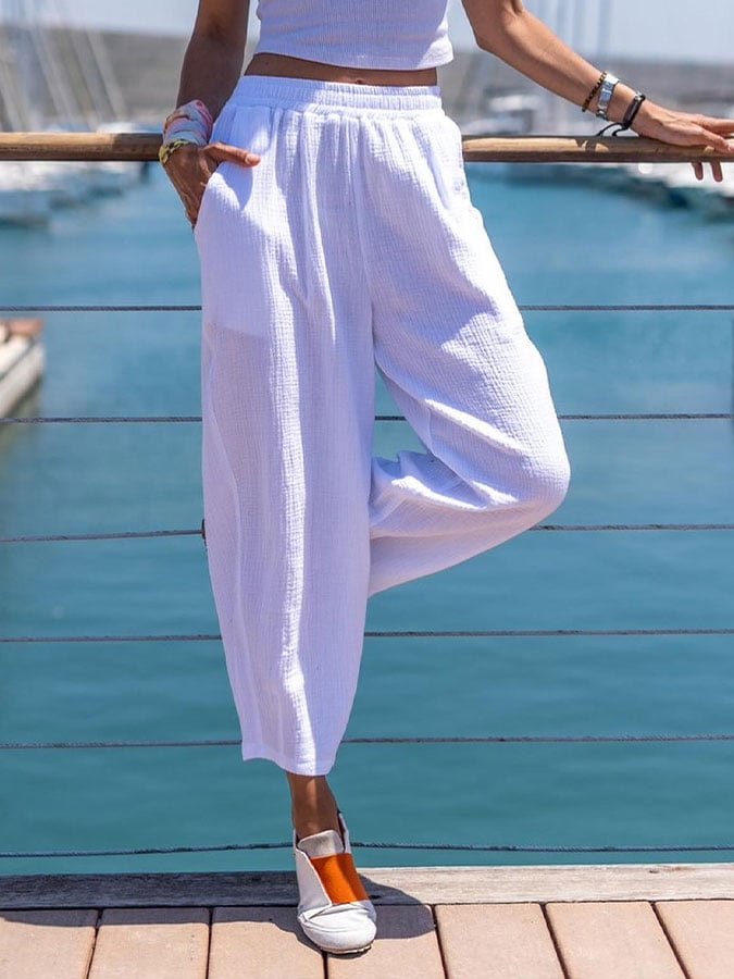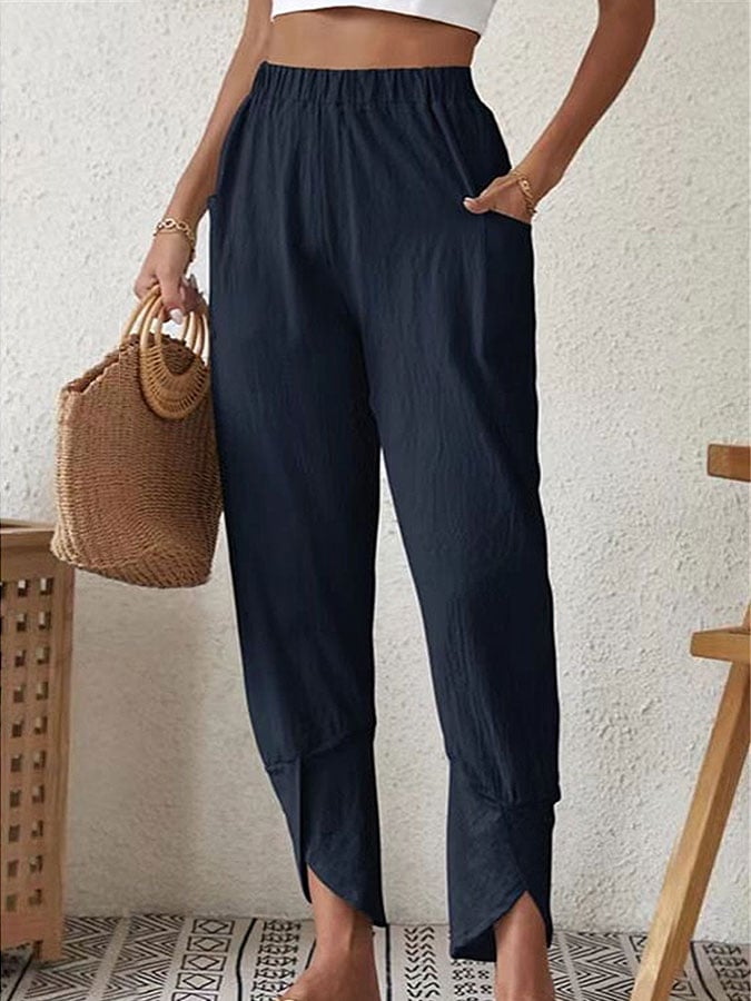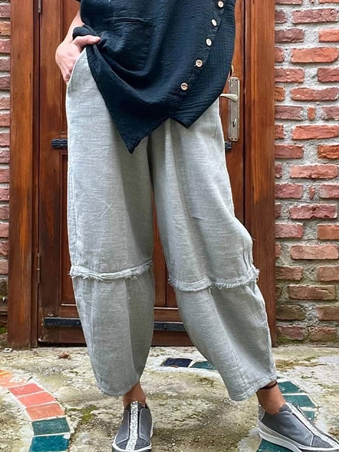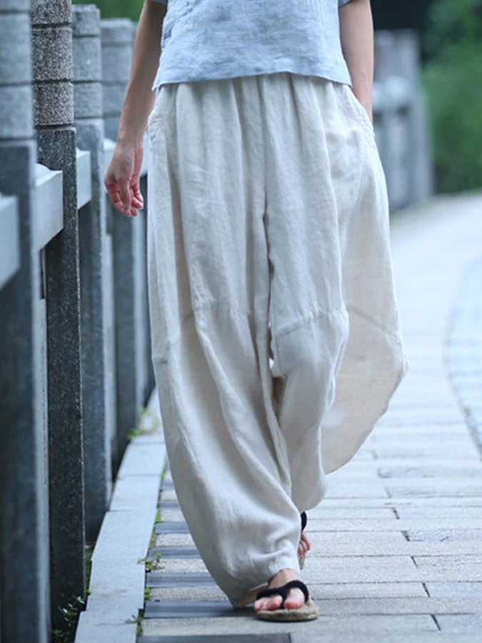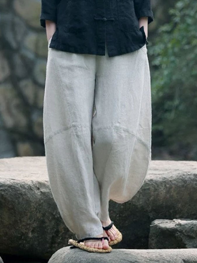 Women's Vintage Solid Color Cotton and Linen Casual Pants
