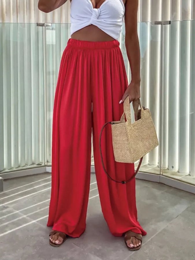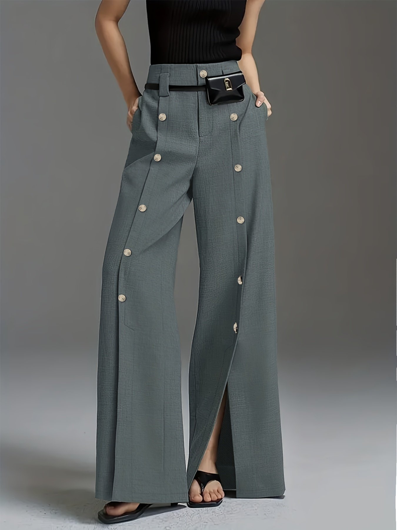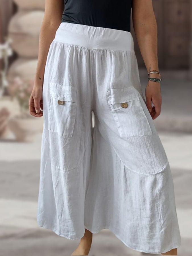 Women's Casual Solid Color Stitching Button Wide Leg Pants