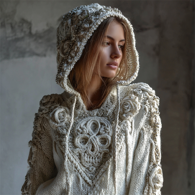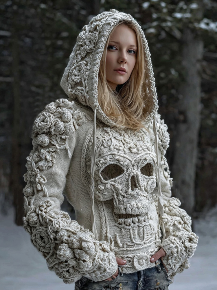 Women's Skull Flower Celtic Knot Knit Hooded Sweater