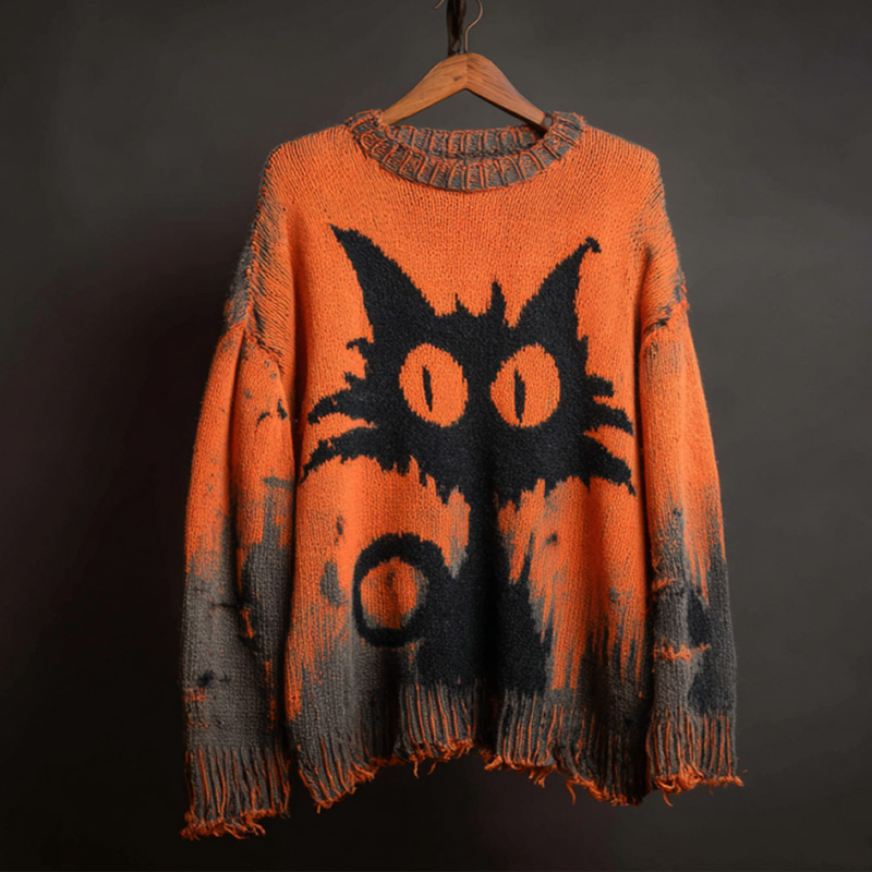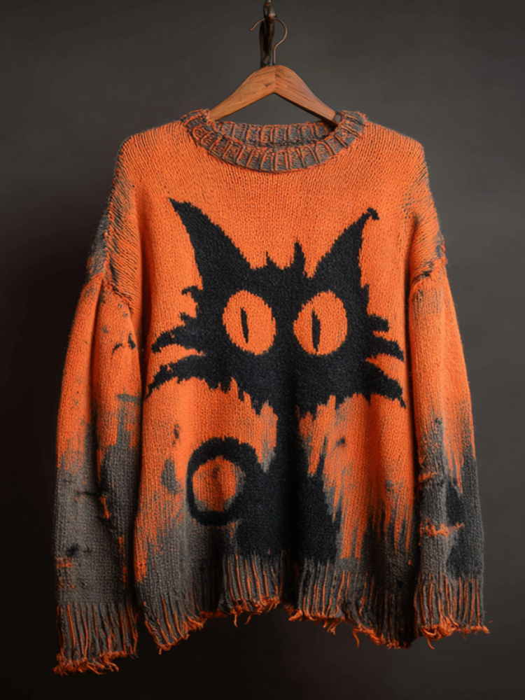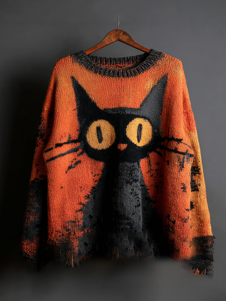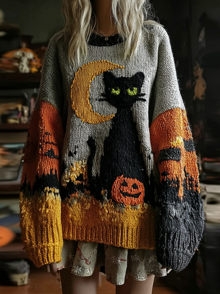 Halloween Black Cat Knit Sweatshirt