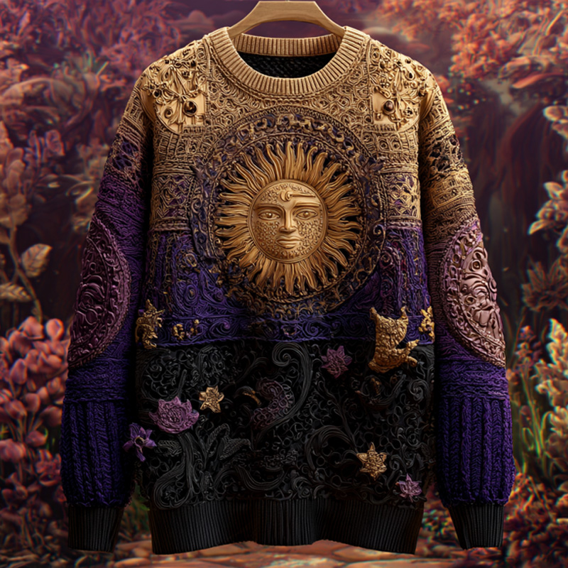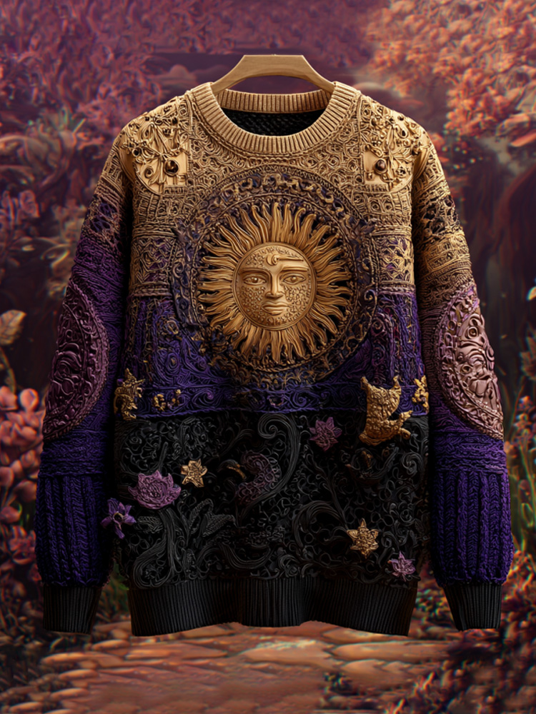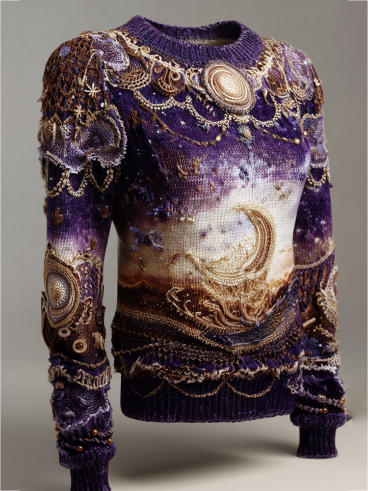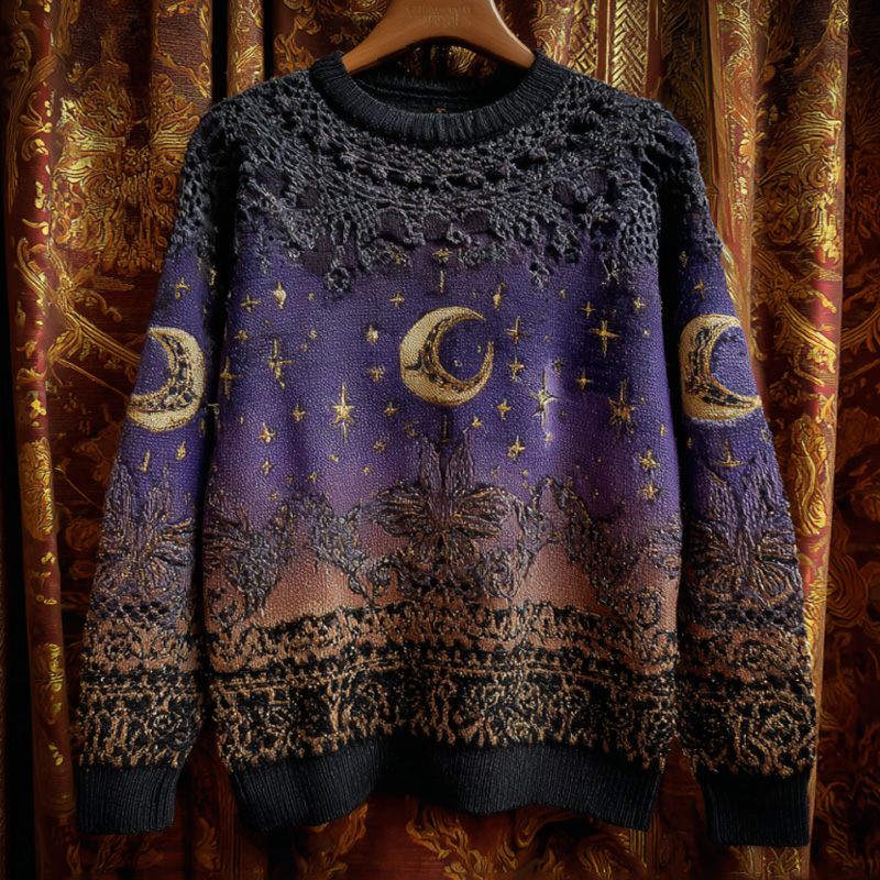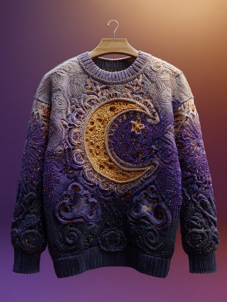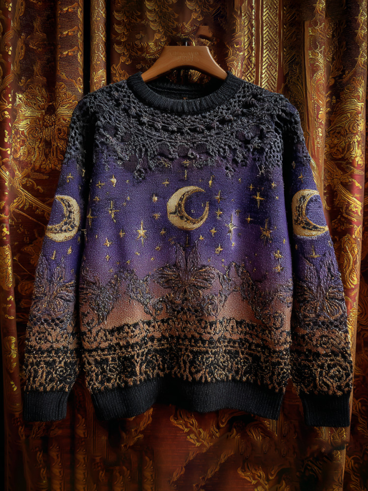 Halloween Mystical Celestial Glitter Moon & Stars Cozy Knit Sweater
