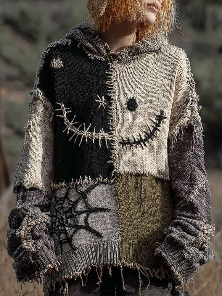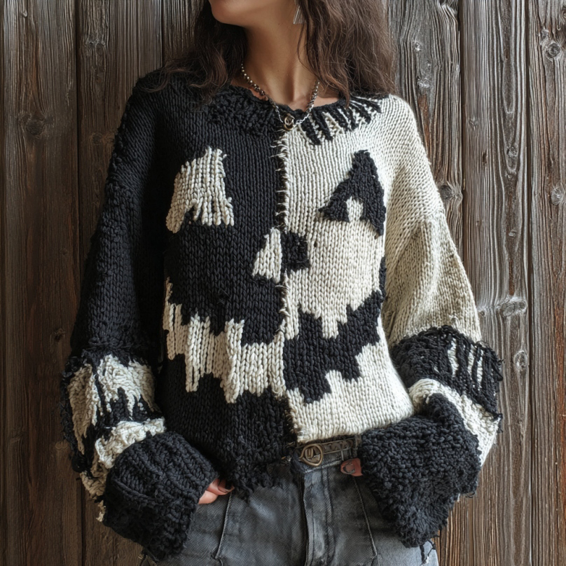 Halloween Spooky Ghost Inspired Patchwork Cozy Knitted Sweater