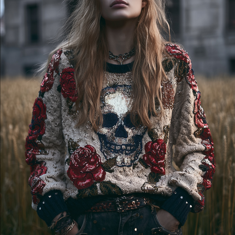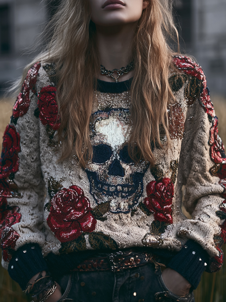 Women's Skeleton Rose Coarse Needle Vintage Long-sleeved Sweater