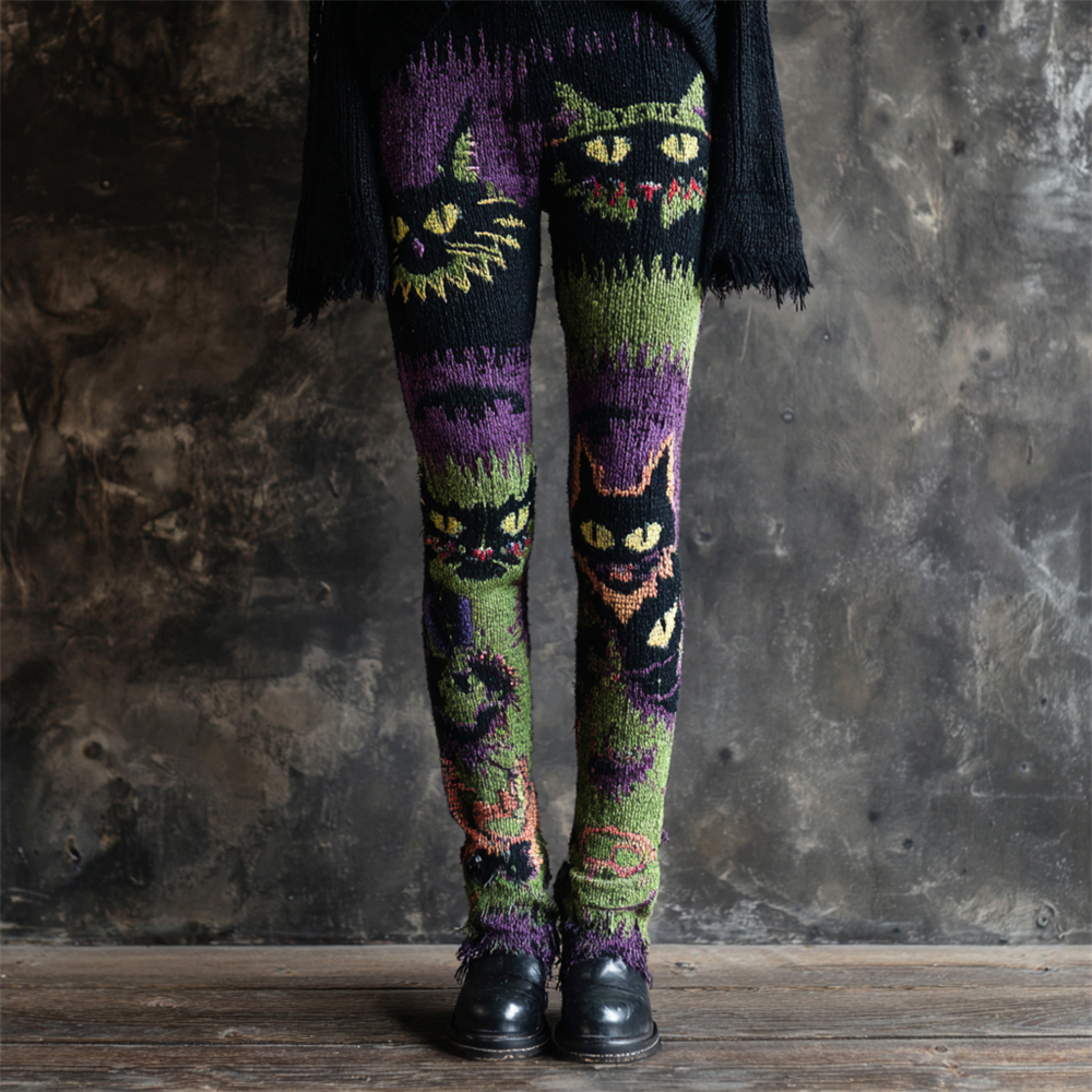 Vintage Halloween Inspired Patchwork Cozy Knitted Leggings
