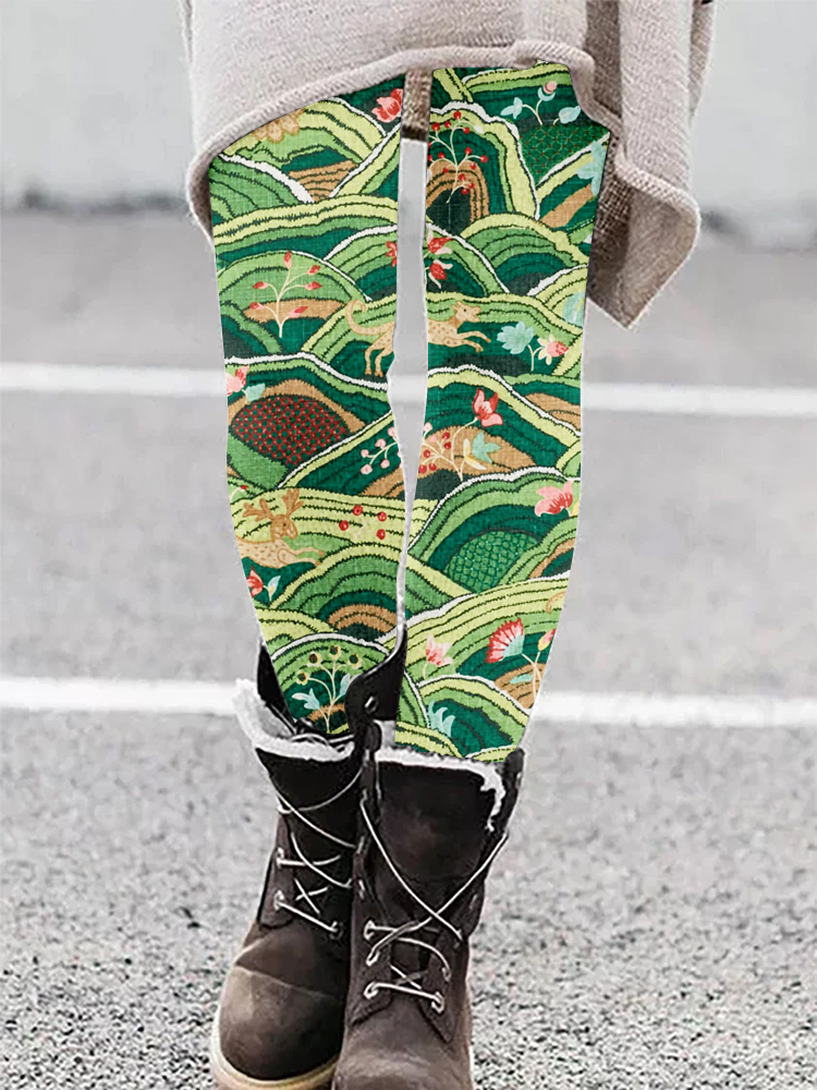 Rolling Hills Embroidery Art Casual Leggings