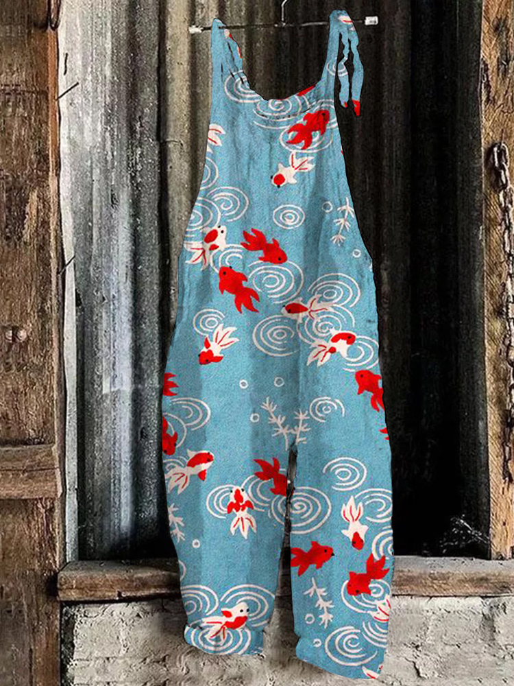 Japanese Gold Fish Art Graphic Loose Fit Jumpsuit