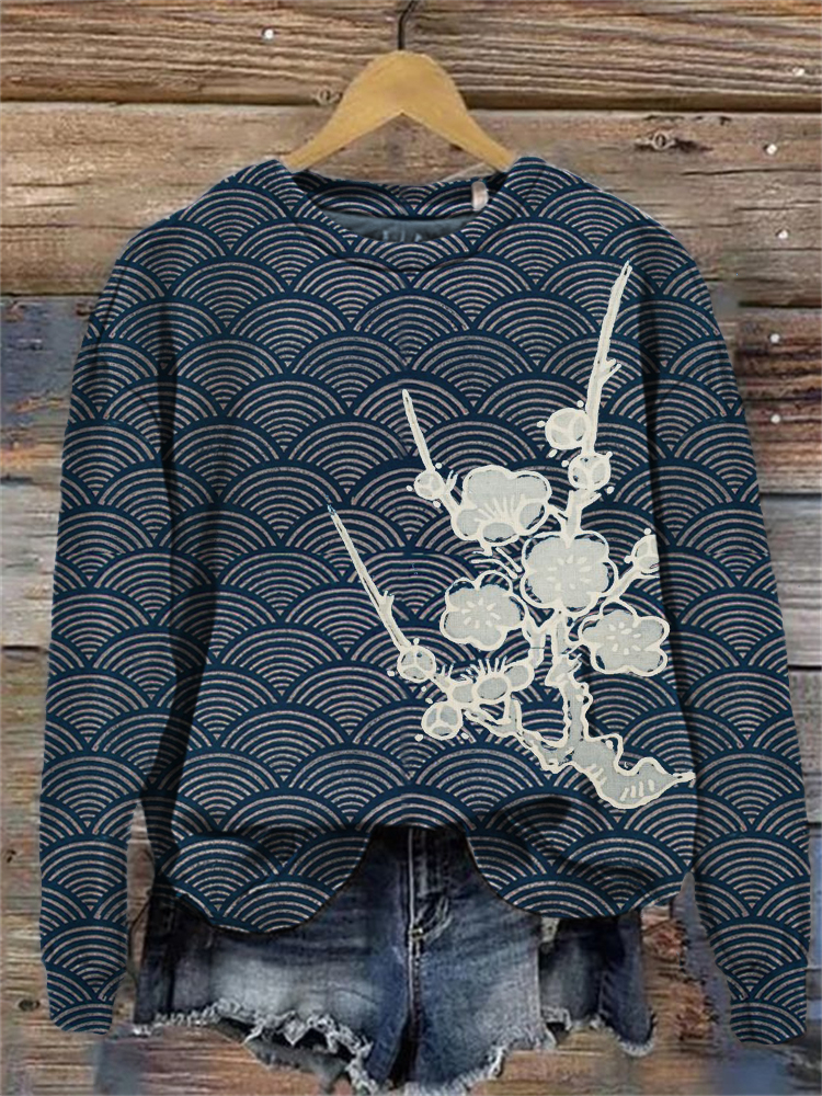 Plum Blossom Art Japanese Waves Pattern Sweatshirt