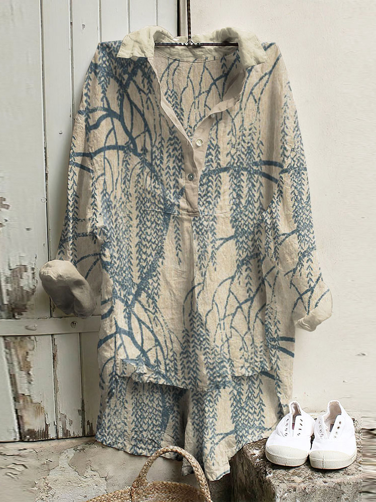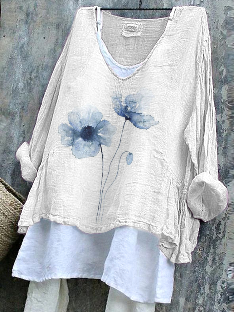 Watercolor Floral Pattern Cozy Cotton Linen Shirt
