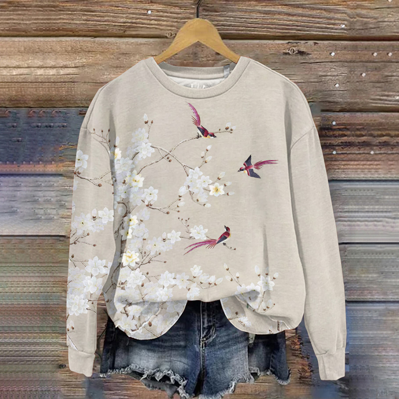 Retro Japanese Birds Blossom Art Woven Tunic