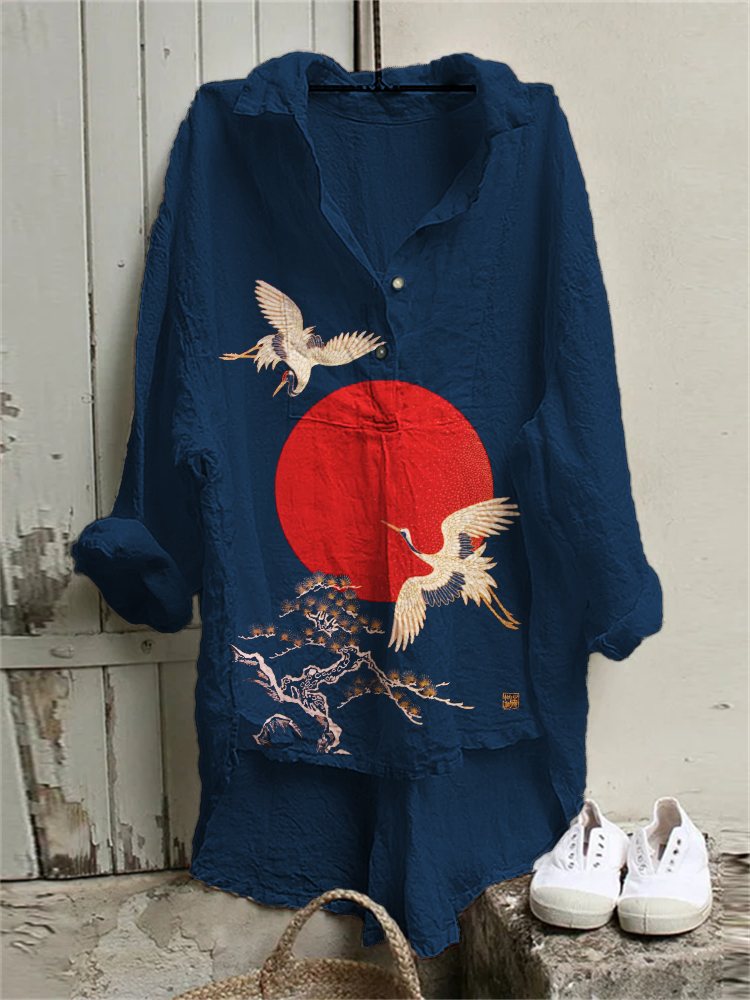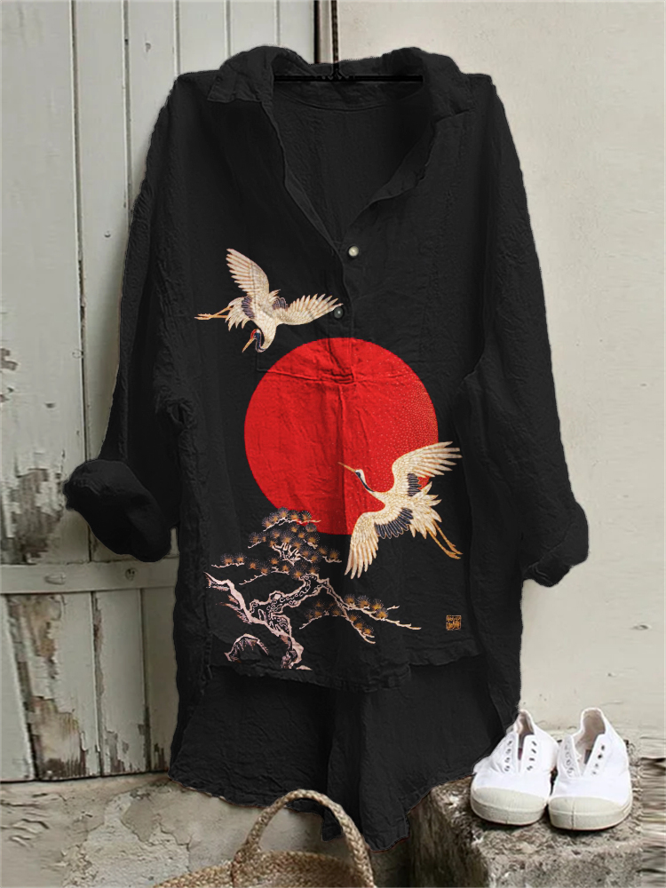 Cranes & Pine Trees Sunrise Japanese Art High Low Tunic