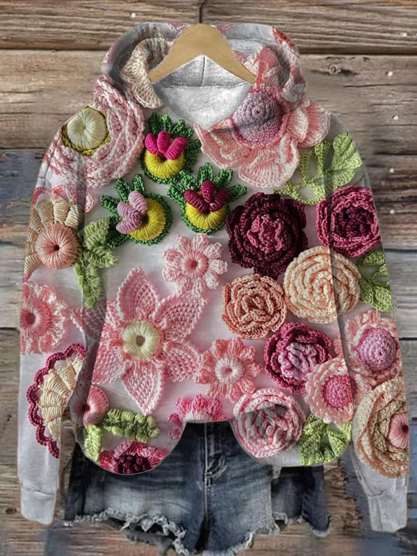 Vintage Floral Print Long Sleeve Casual Hoodie