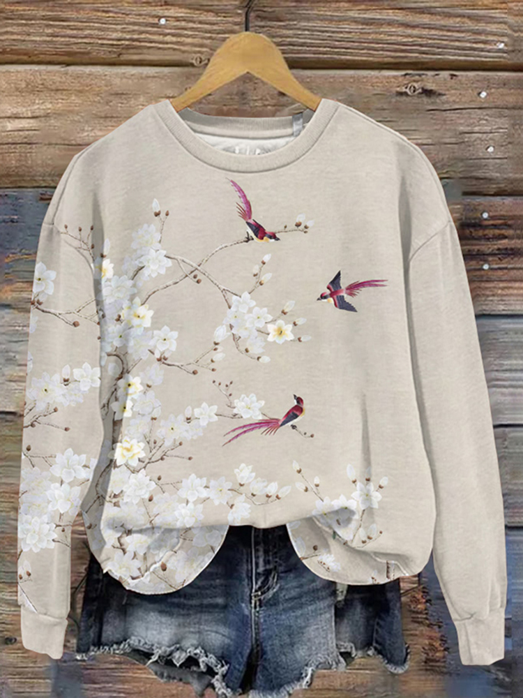 Vintage Floral Print Crew Neck Casual Sweatshirt