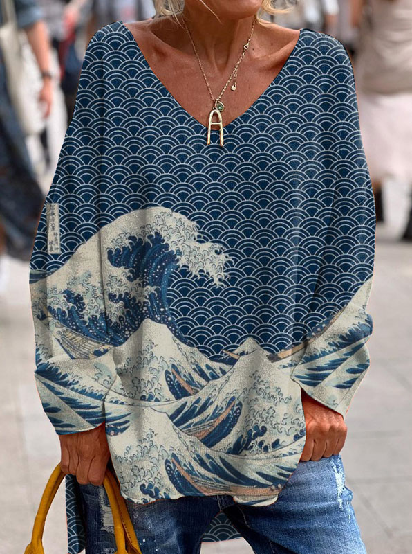 Japanese Art Print Loose Long Sleeve Shirt