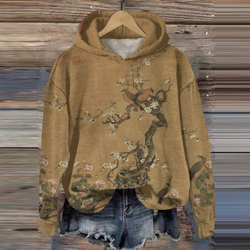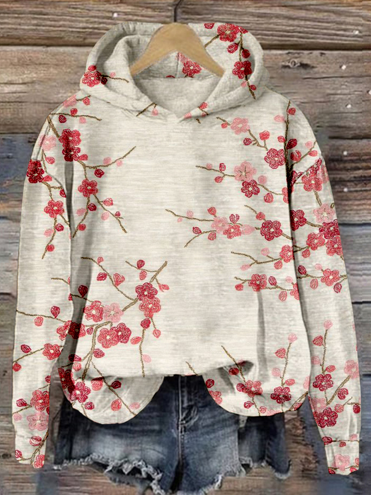 Plum Blossom Embroidered Art Vintage Cozy Hoodie