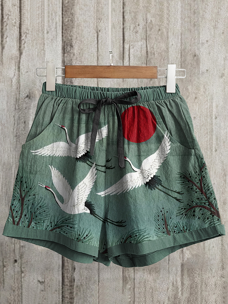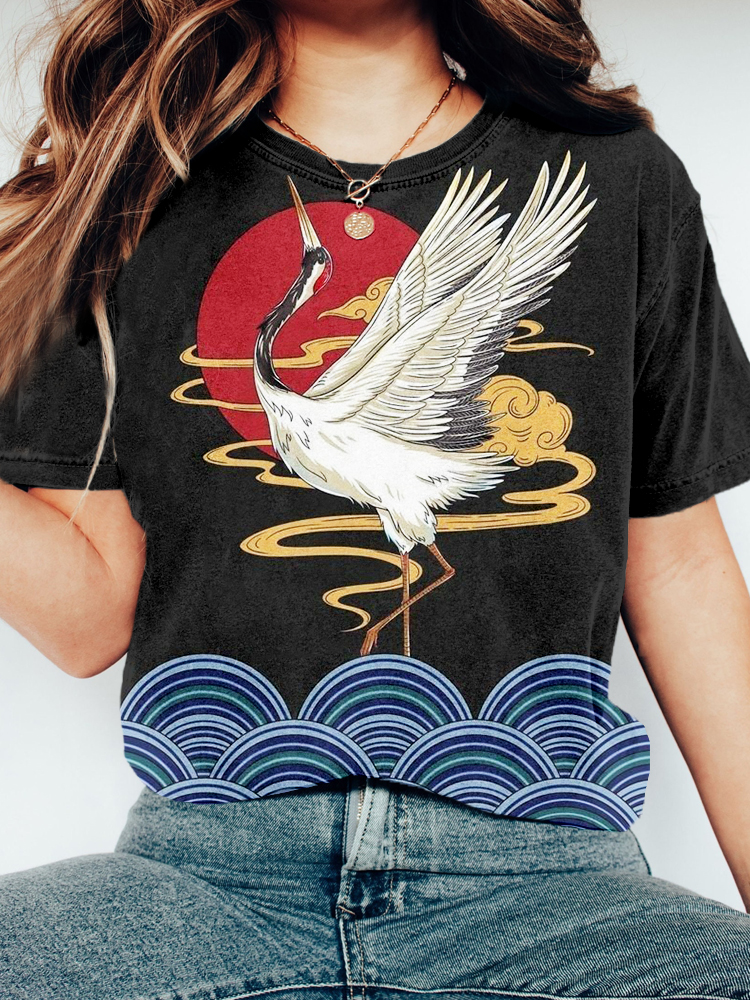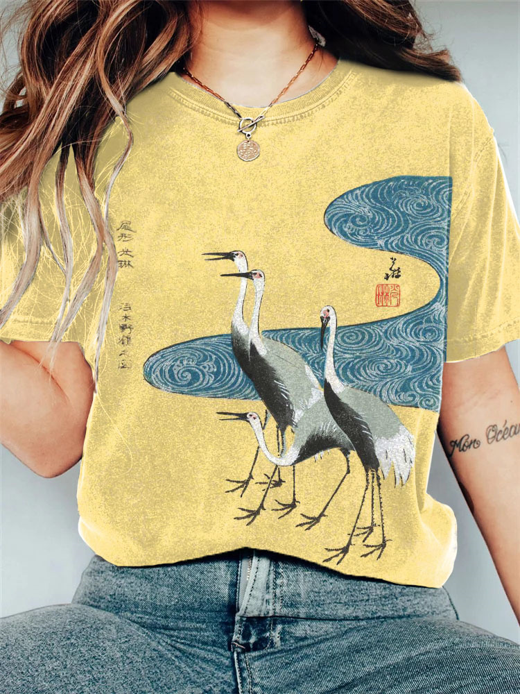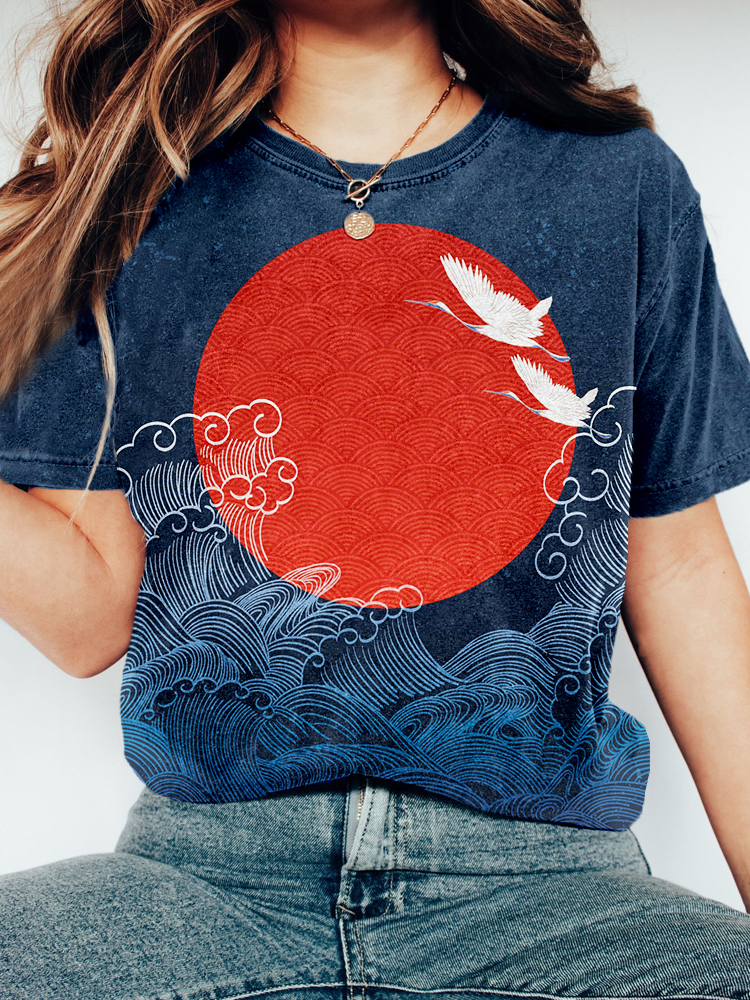 Japanese Cranes & Waves Art Vintage Comfy T Shirt