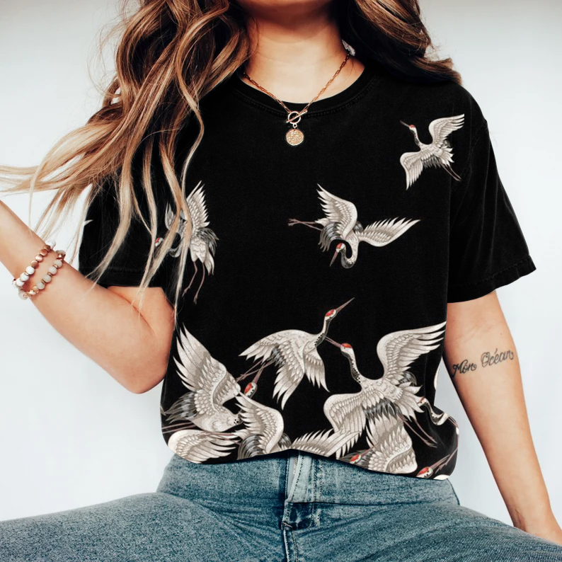 Flying Cranes Japanese Art Graphic Vintage T Shirt