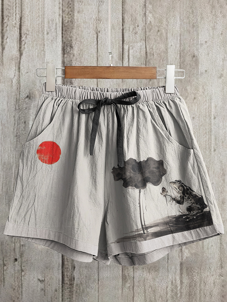 Japanese Art Ink Painting Flower Print Casual T-Shirt