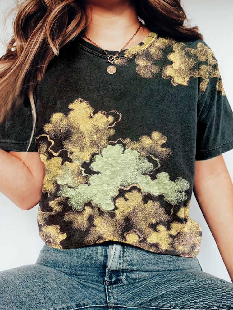 Traditional Cloud Motif Vintage Cozy T Shirt