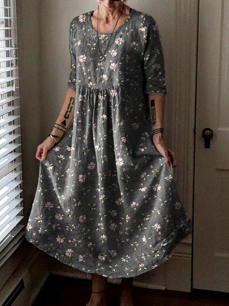Women's Vintage Floral Art Pattern Print Pocket Cotton Dress