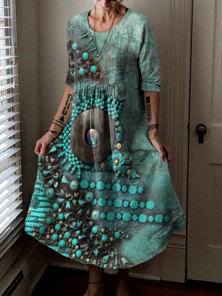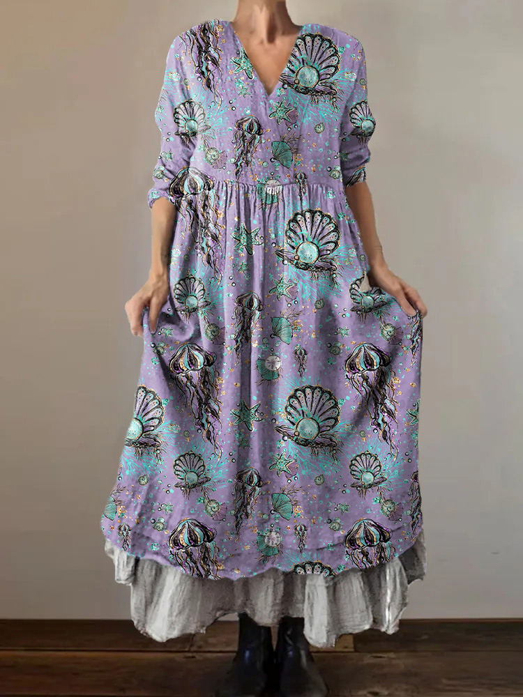 Women's Hippie Art Painting Underwater World Printed V-Neck Dress