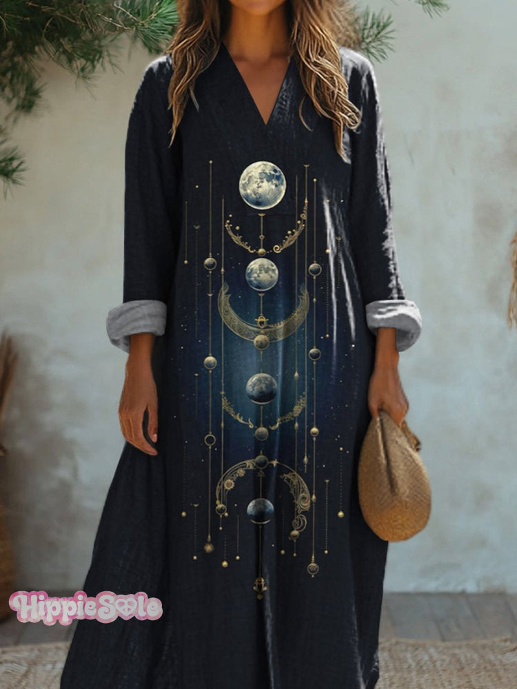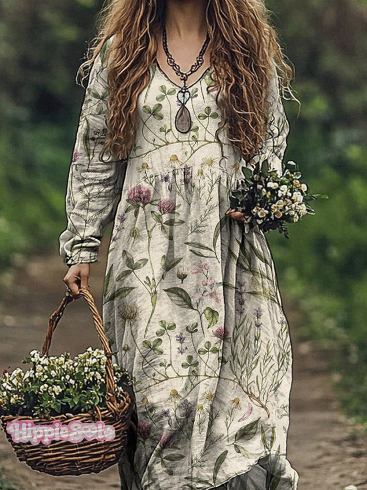 Women's Bohemian Ethnic Art Print V-Neck Long Sleeve Maxi Dress
