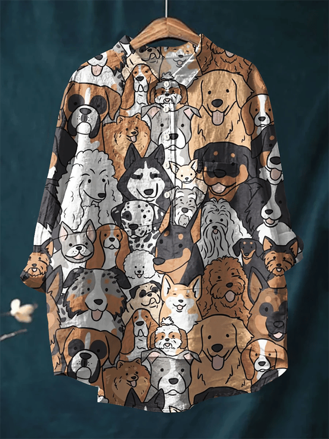 Women's Line Abstract Art Print Casual Long Sleeve Comfortable Cotton Shirt