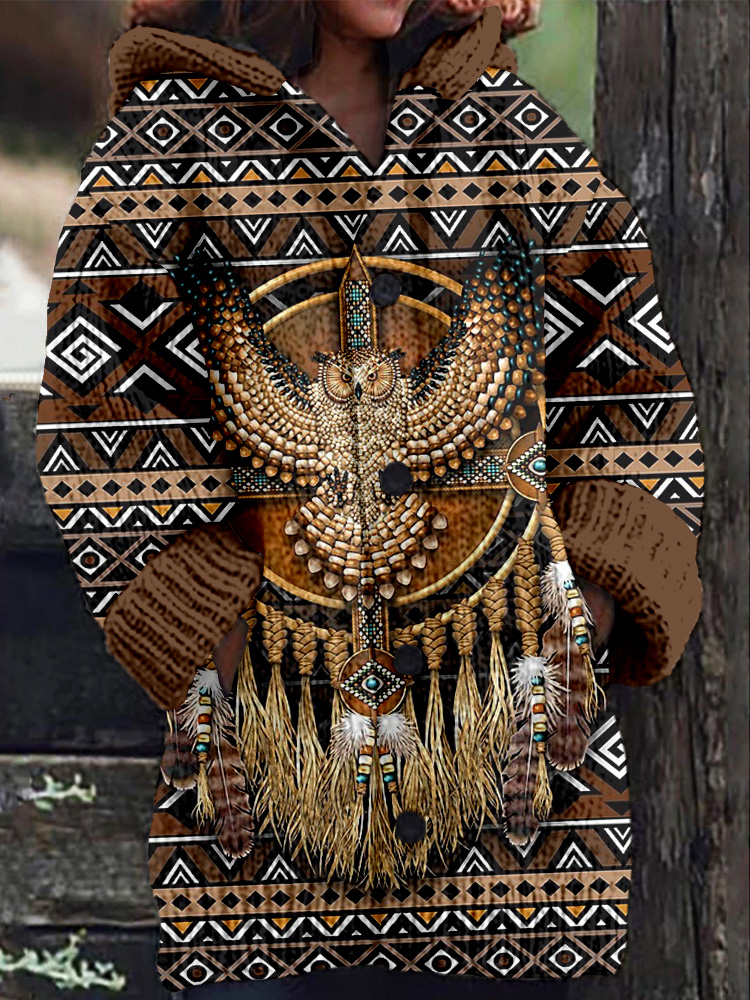 Women's Vintage Boho Floral Art Print Casual Long Sleeve Cotton Shirt
