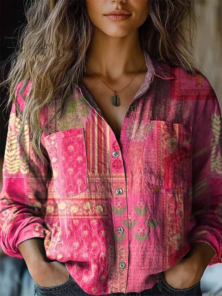 Women's Retro Patchwork Art Pattern Long Sleeve Comfortable Cotton Shirt