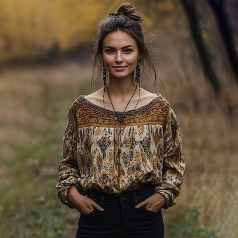 Women's Vintage Bohemian Print T-shirt