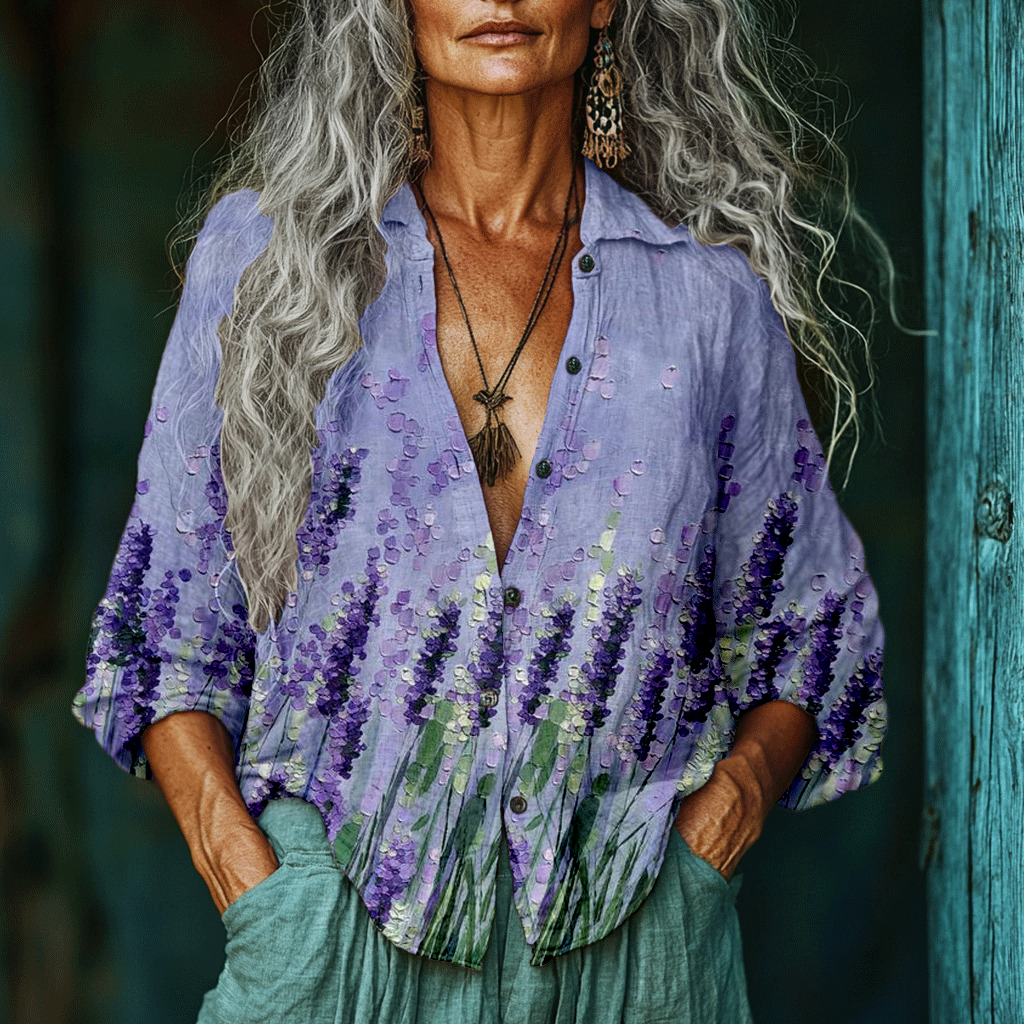 Purple Lavender Painting Art Linen Blend Cozy Blouse