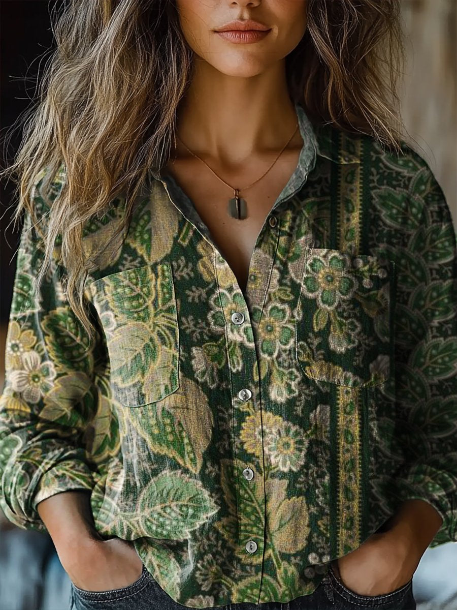 Women's Vintage Floral Art Print Casual Long Sleeve Comfortable Cotton Shirt