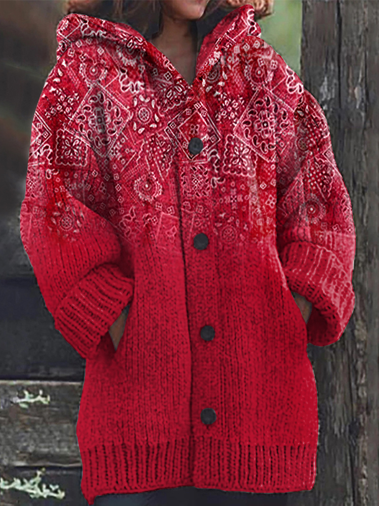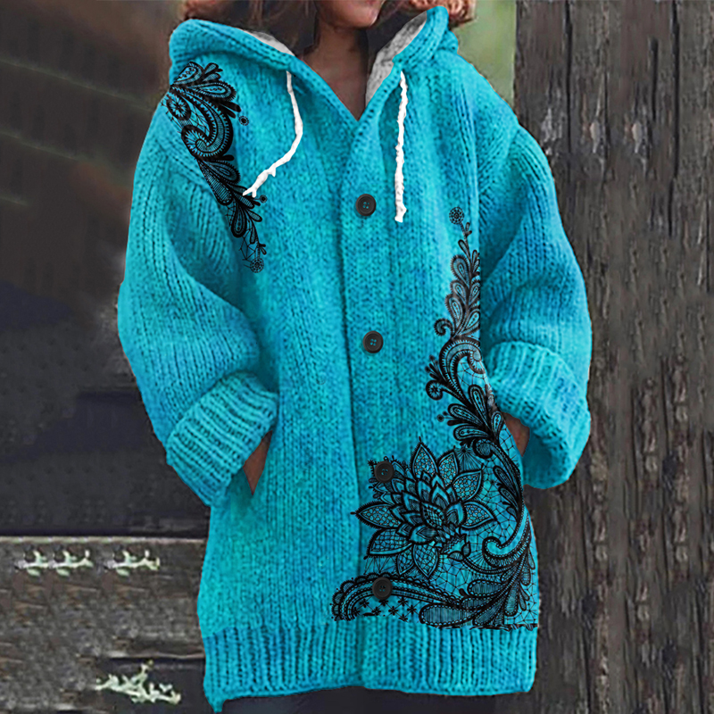 Vintage Tribal Floral Knitted Embroidery Print Cardigan Sweater