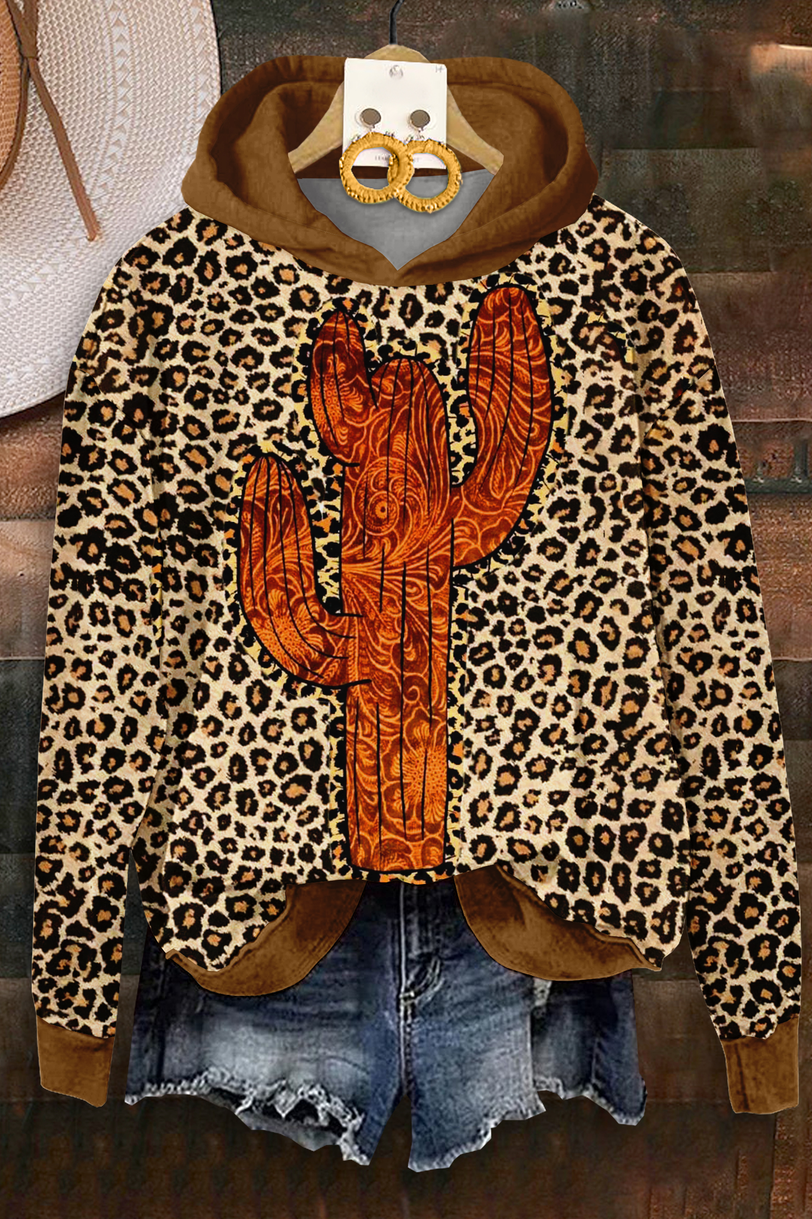 Mixed Animal Print Pattern Printed Women's Linen And Cotton V-Neck Casual Shirt
