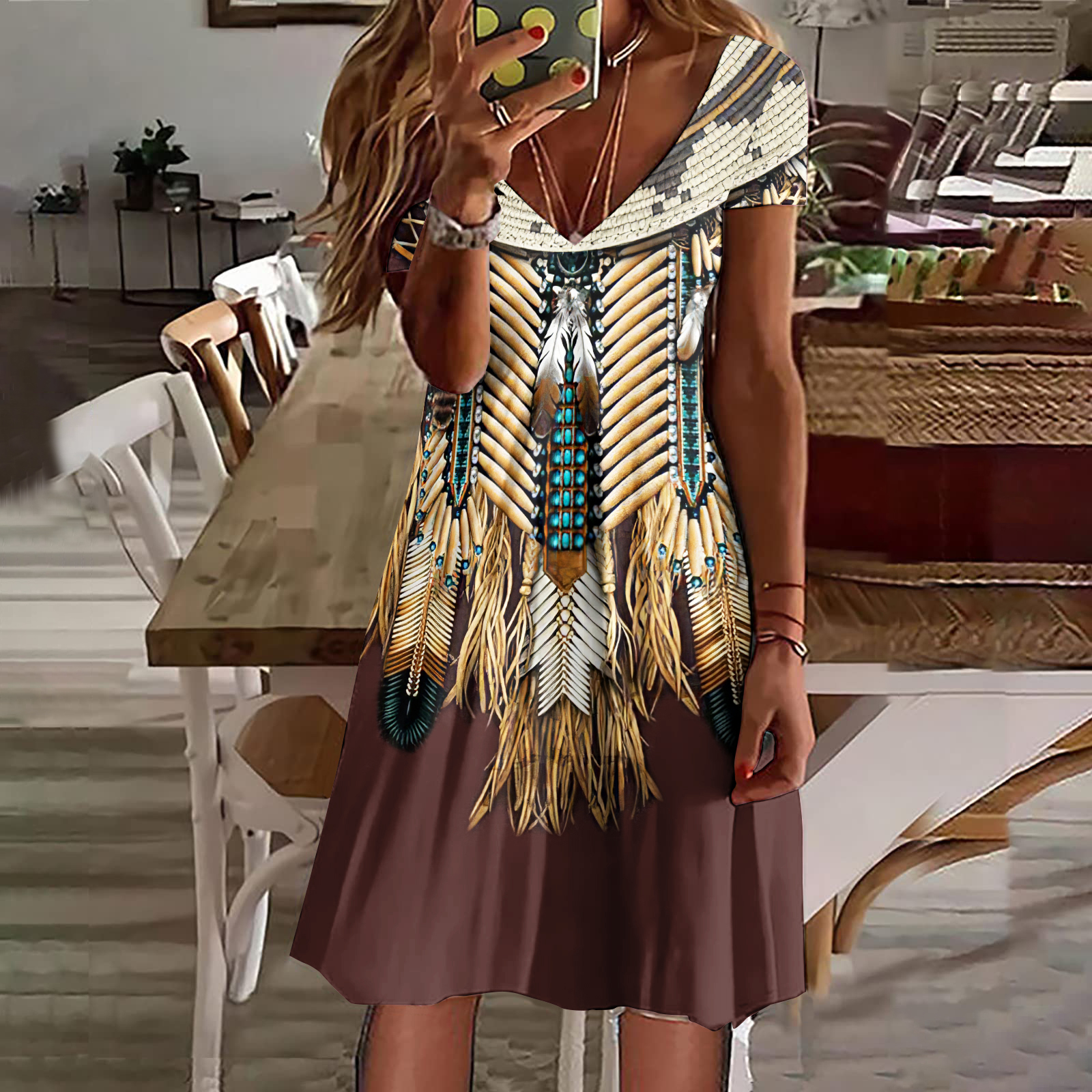Women's Vintage Ethnic Pattern Art Print Cotton Dress