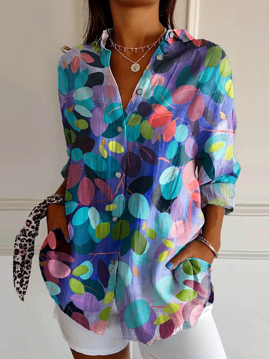 Women's Lovely Floral Art Print Casual Cotton Shirt