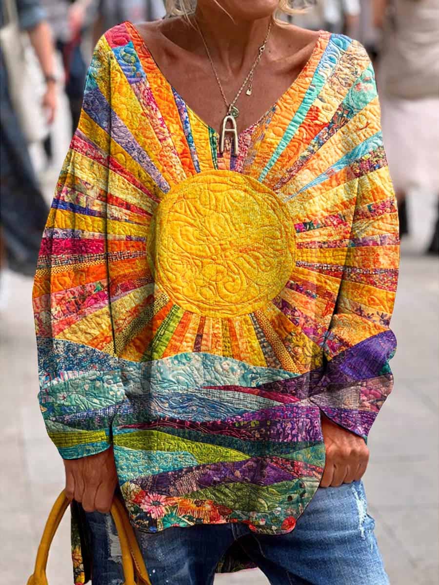 Women'S Geometric Pattern Long Sleeve Comfortable Cotton Top