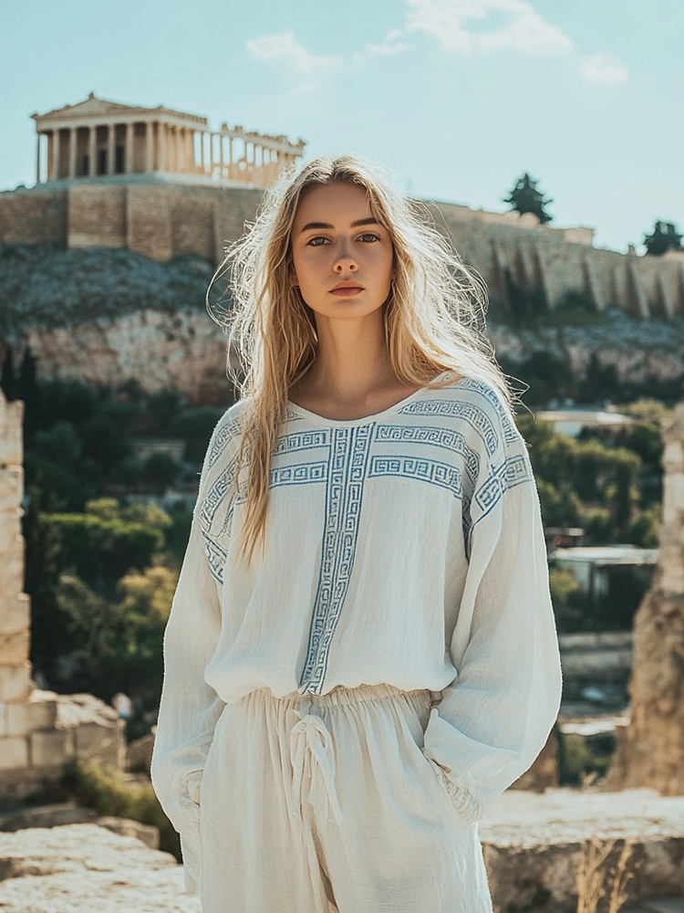 Bohemian Tribal Embroidery Print Cotton And Linen Blend Loose Blouse