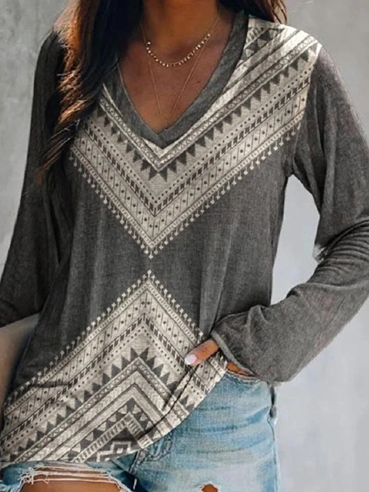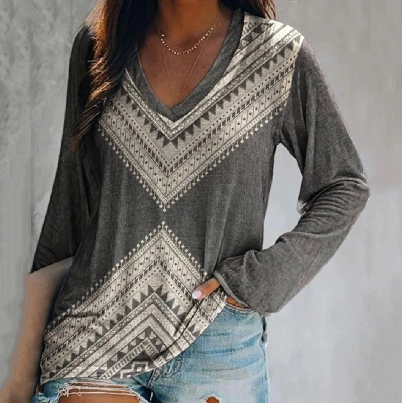 Women's Abstract Pattern Art Print Casual Long Sleeve Comfortable Cotton Shirt