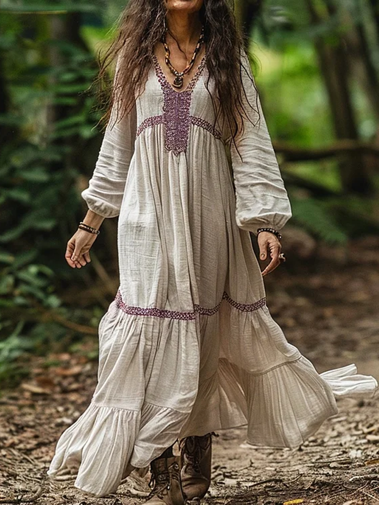 Vintage Linen Bohemian Loose Simple Maxi Long Dress