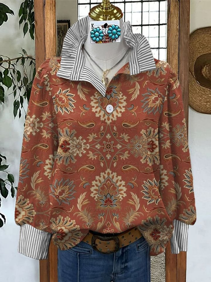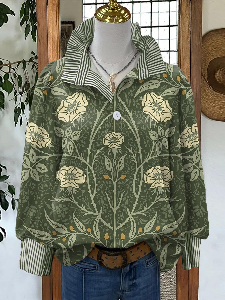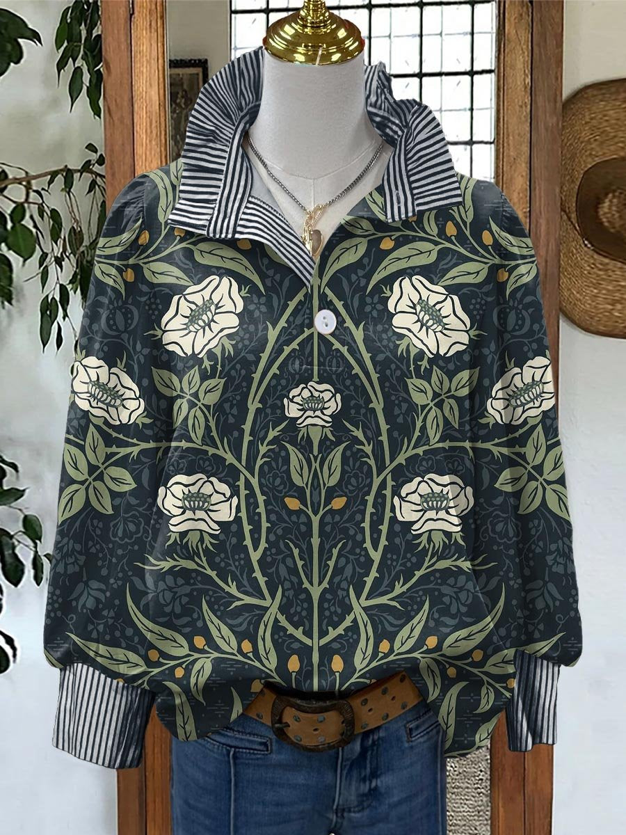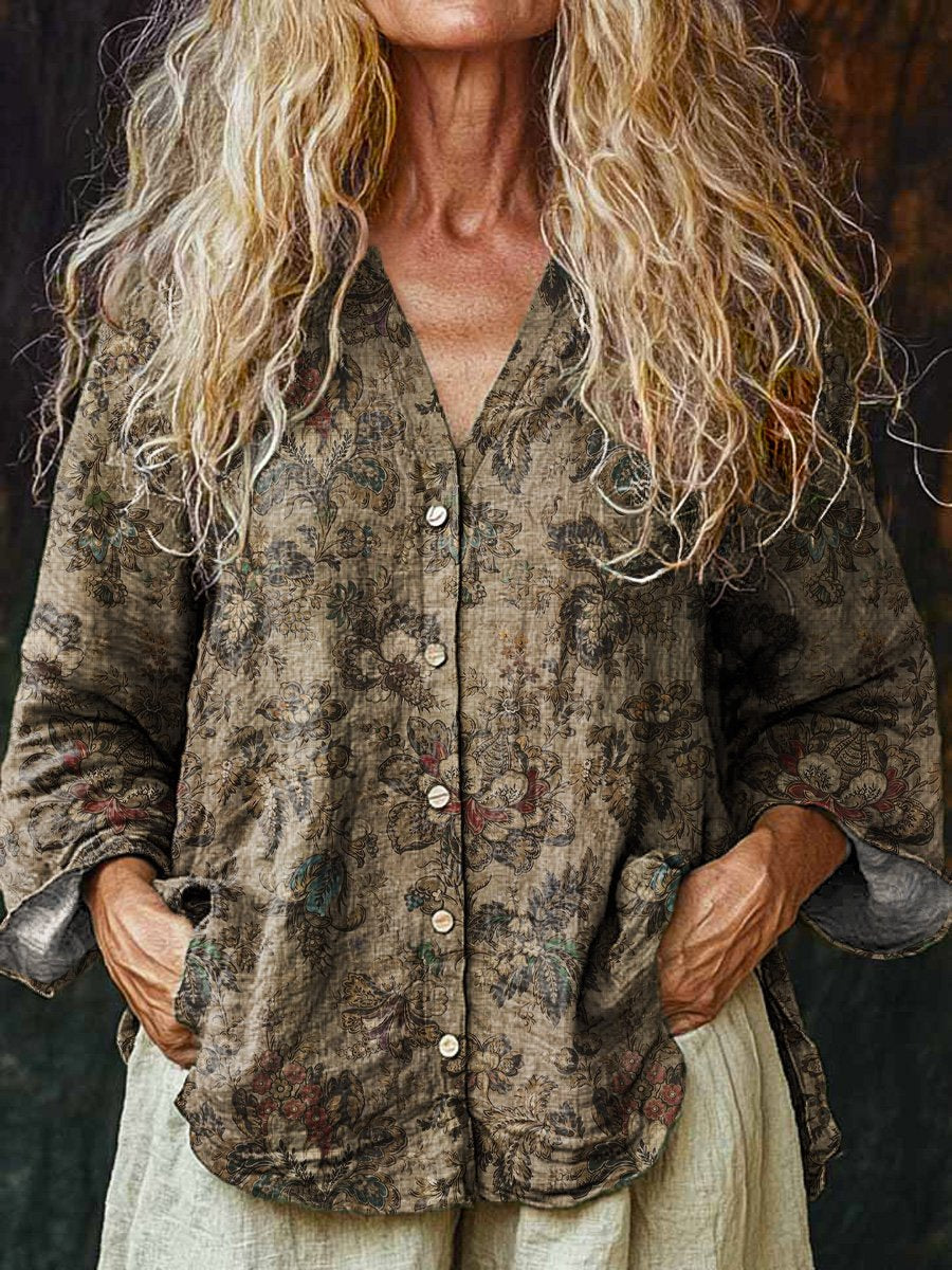 Women's Vintage Floral Art Print Casual Long Sleeve Comfortable Cotton Shirt