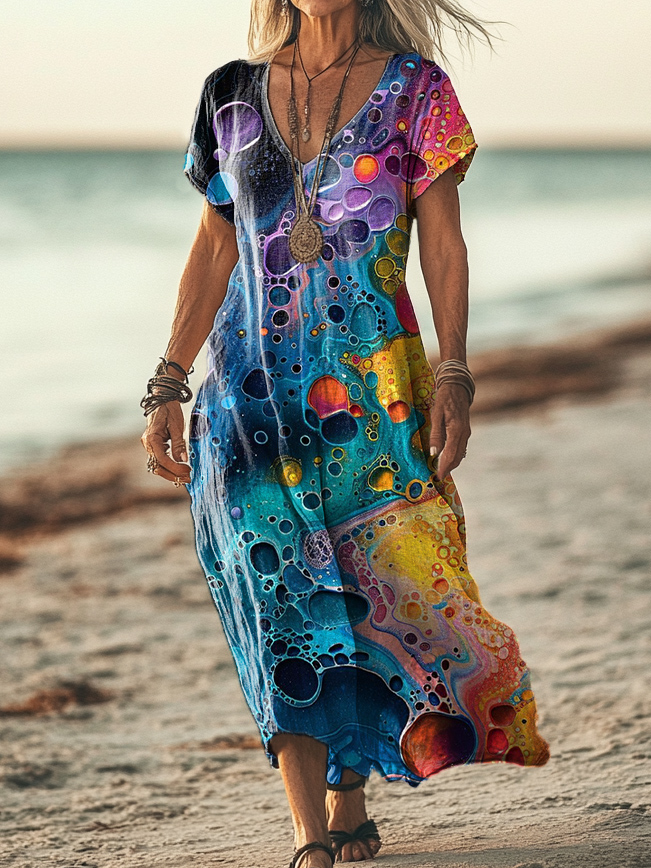 Women's Colorful Irregular Pattern Art Print Pocket Cotton Dresses