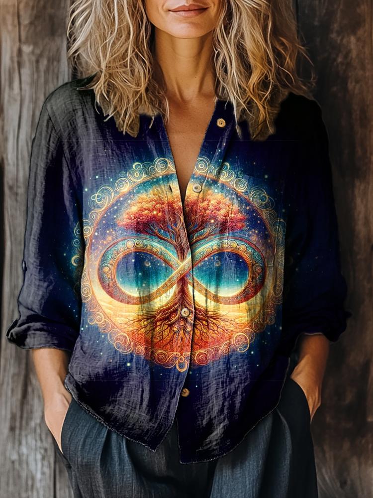 Women's Colorful Tree Art Pattern Print Casual Long Sleeve Cotton Shirt