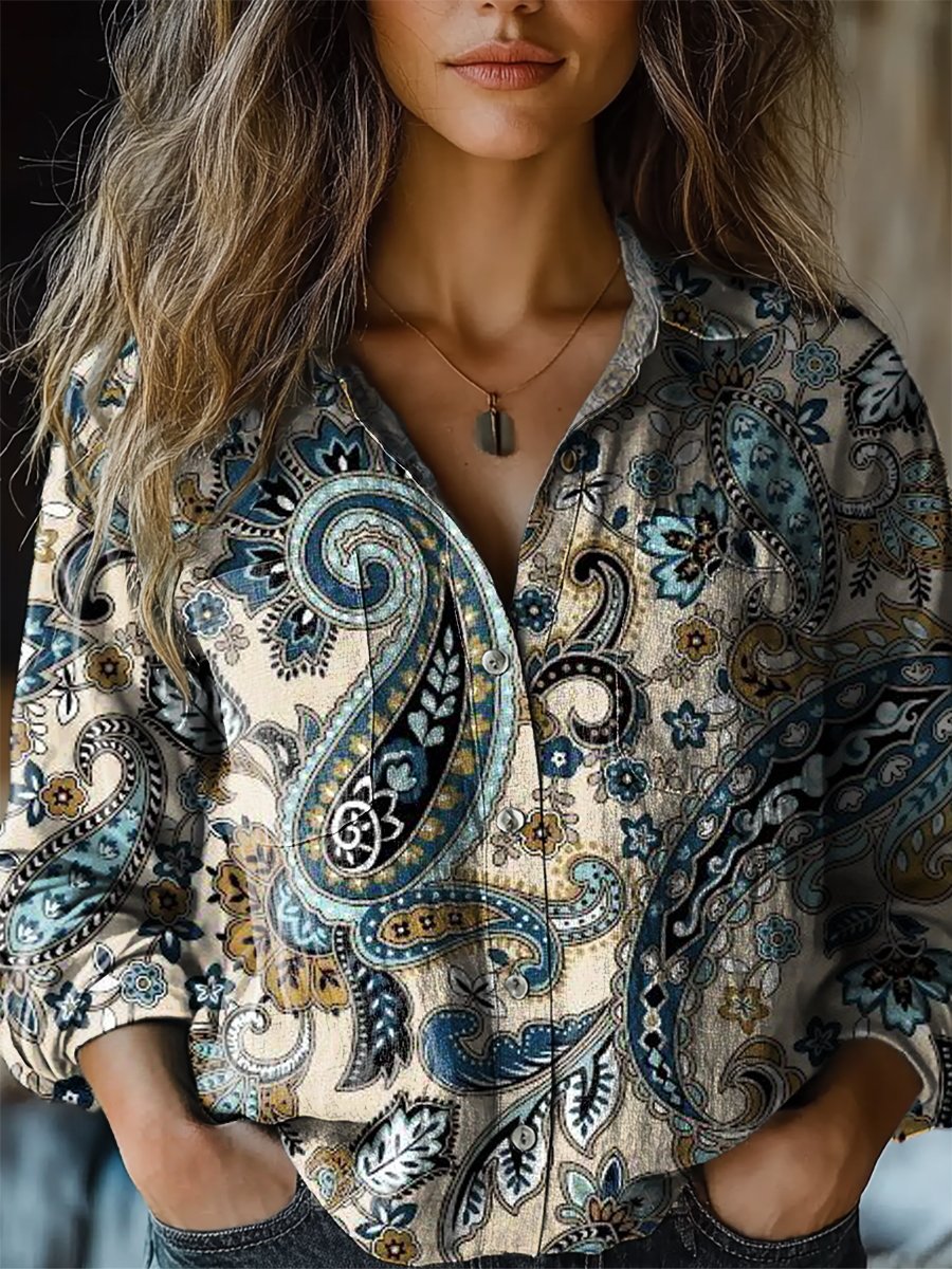 Women's Paisley Pattern Art Print Casual Long Sleeve Comfortable Cotton Shirt