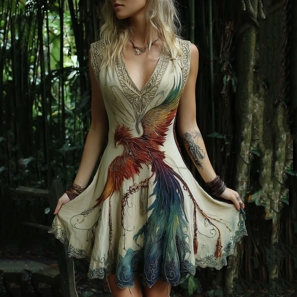 Viking Mythology Phoenix Totem Gradient Mini Dress