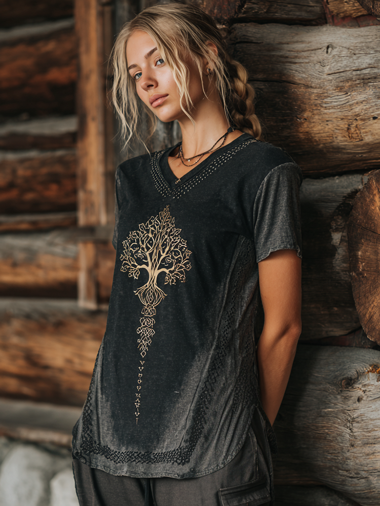 Women's Viking Tree Of Life Gradient V-neck T-shirt
