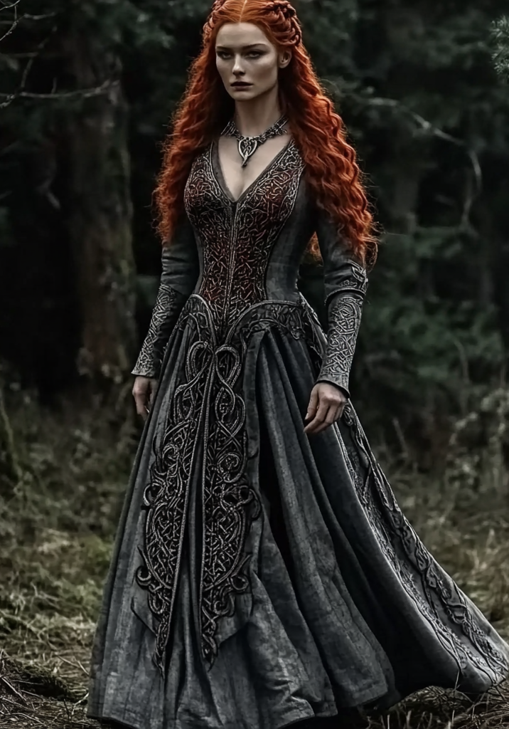 Women's Viking Celtic Rose Design V Neck Maxi Dress